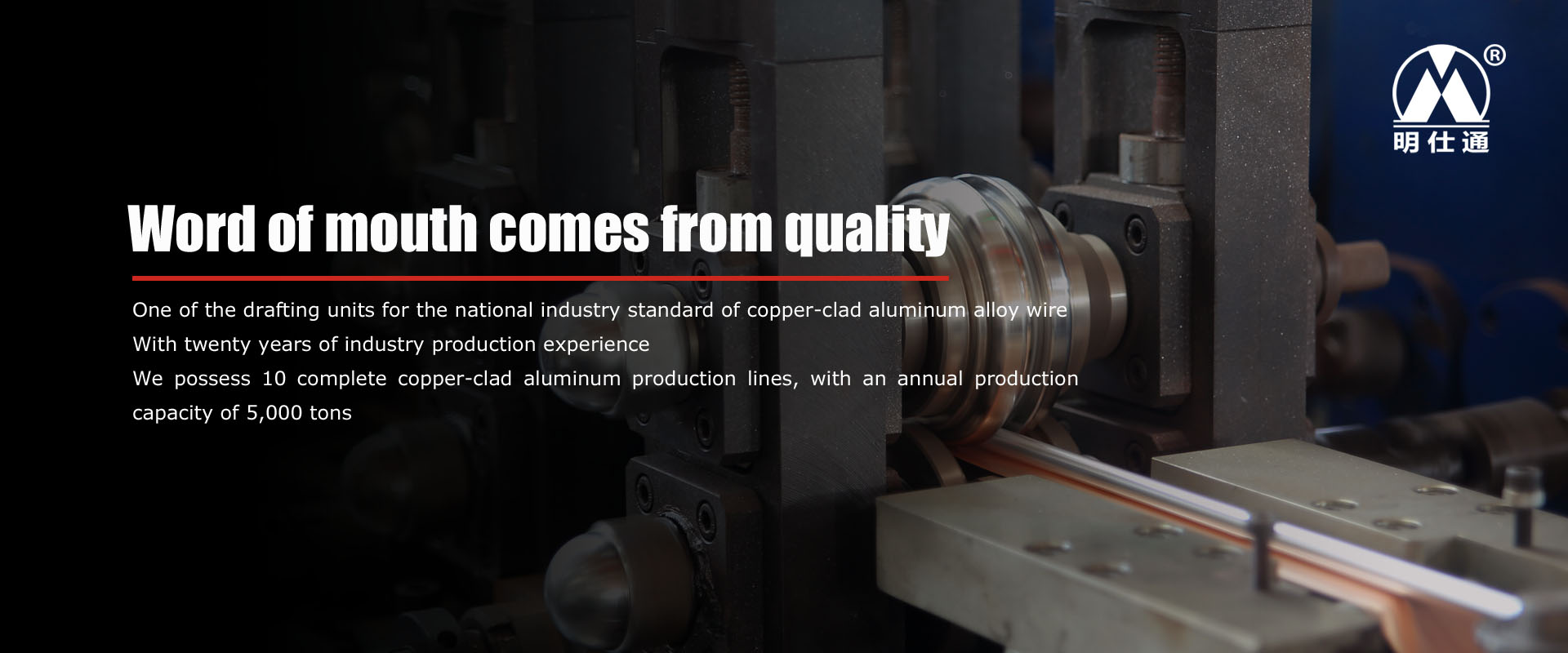 Changzhou Mingtong Metal Composite Material Co., Ltd. is located in Changzhou City, Jiangsu Province, with beautiful scenery and beautiful environment in the Yangtze River Delta Region. The company mainly produces copper clad aluminum alloy wire, copper clad aluminum complete sets of equipment and other products. The company was established in 2005, the company covers an area of 25 acres, plant 15,000 square meters, a total investment of 50 million yuan. At present, the company has 10 copper-clad aluminum alloy wire-wrapped assembly lines with an annual production capacity of 5,000 tons.